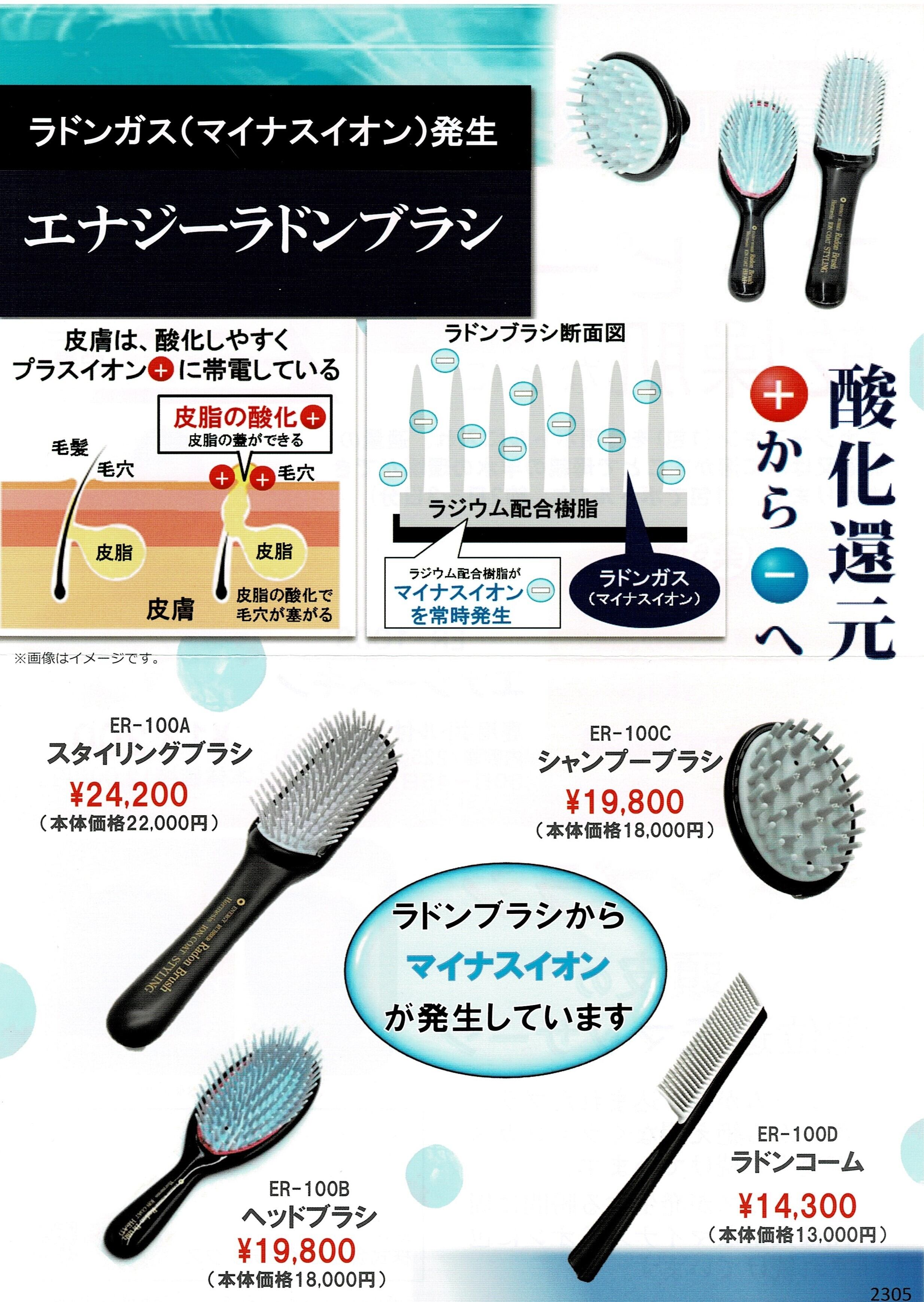 ラドンブラシから出るマイナスイオン効果で頭皮環境を整え皮脂の酸化を軽減する効果が望めます。ラドンブラシのマイナスイオン効果で髪の毛や毛穴の酸化を予防ししっとりした髪の毛に導きます。