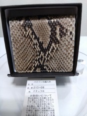高品質なパイソンレザーで作られた小銭入れ。ナチュラルな色合いが洗練された印象を与える。