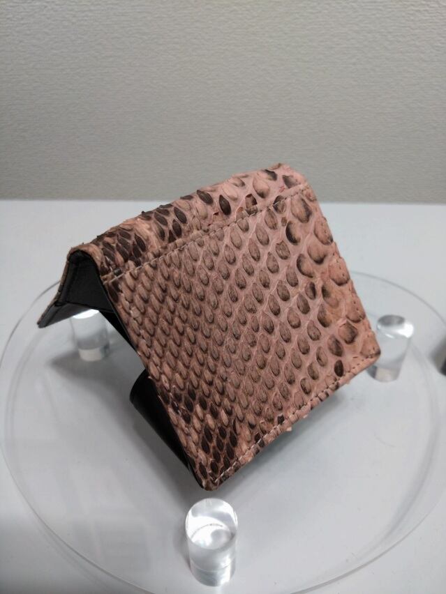 高品質なパイソンレザーで作られた小銭入れ。ナチュラルな色合いが洗練された印象を与える。